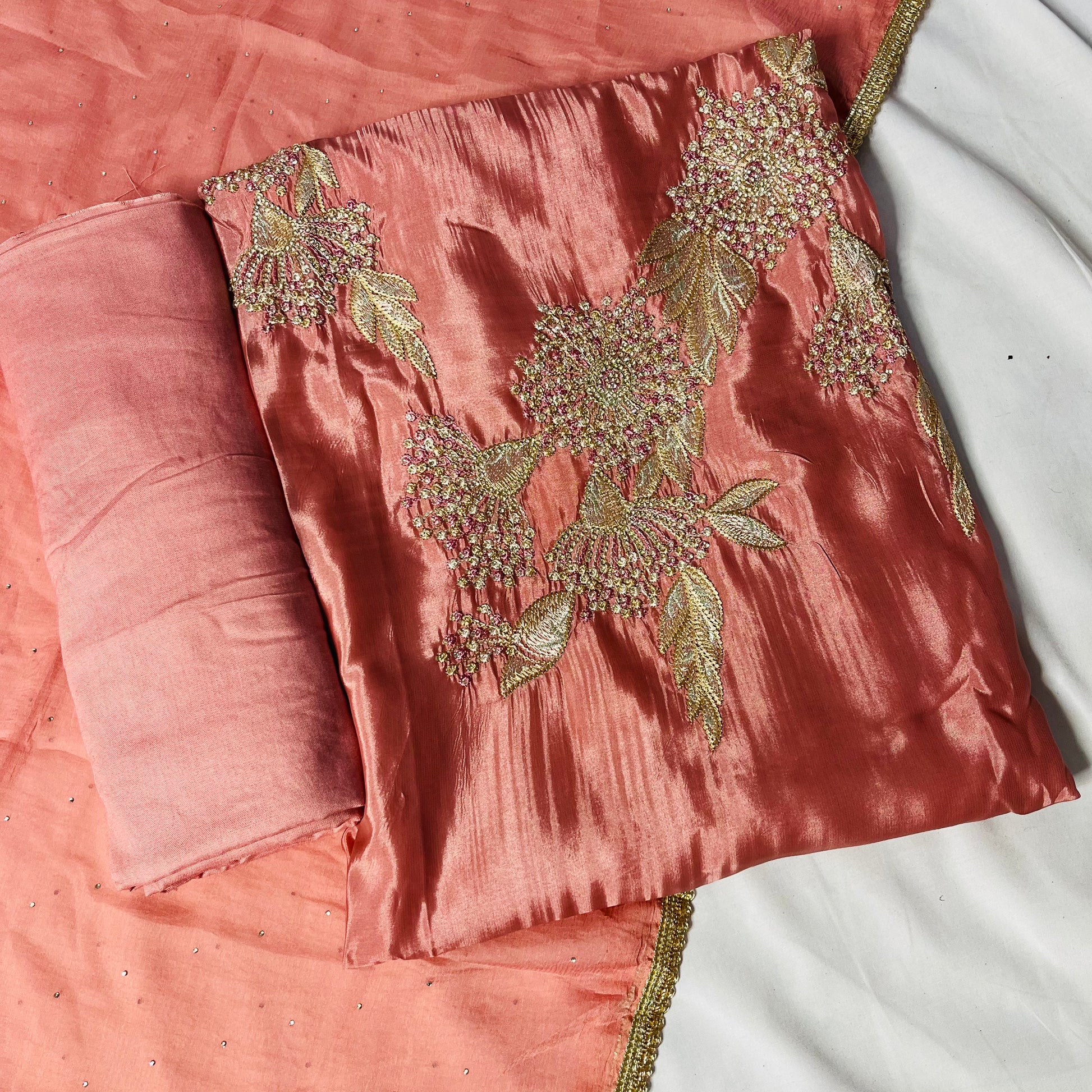 Dark Peach Organza Suit | Handwork & Diamond Dupatta