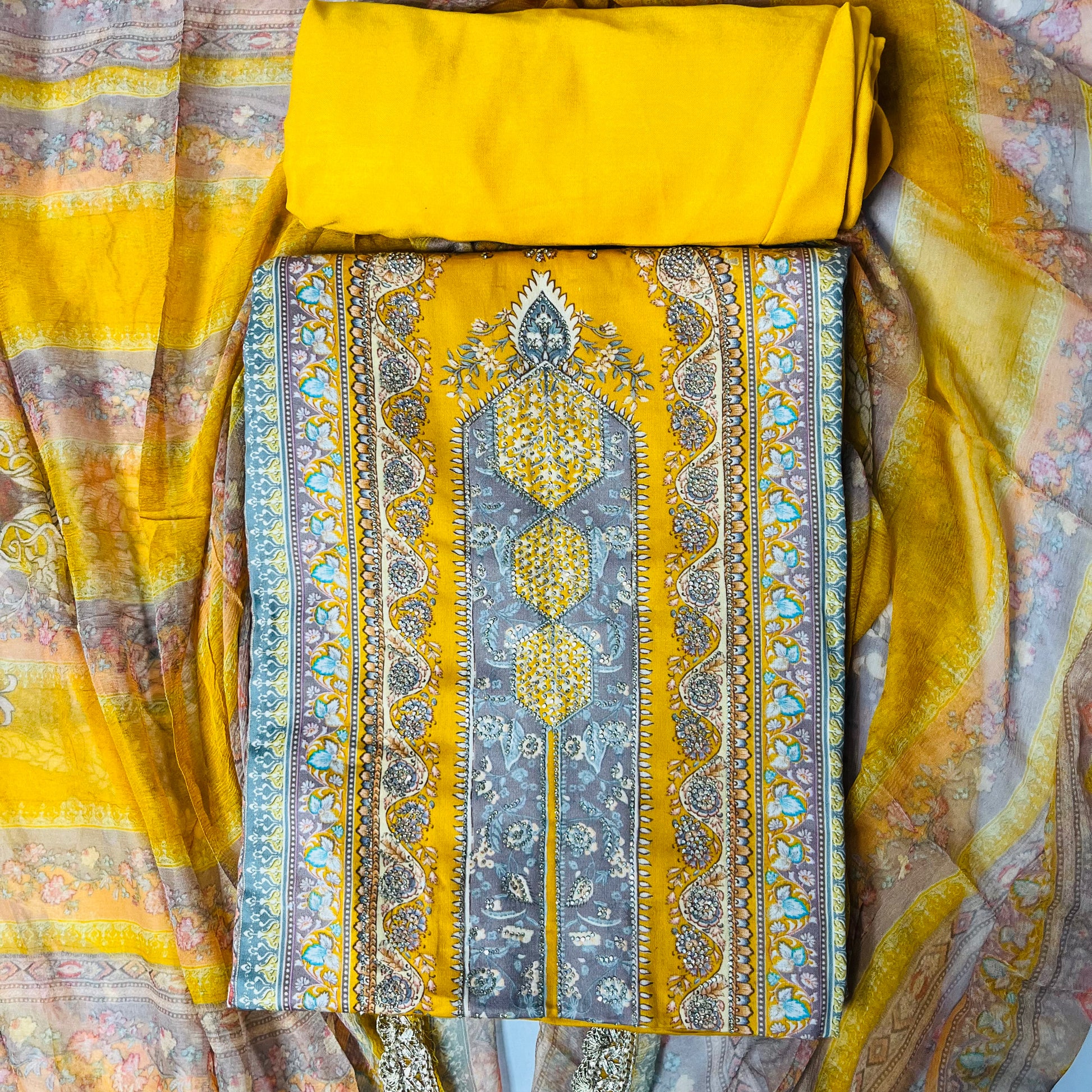 Elevate your ethnic wardrobe with this luxurious Jam Silk suit, paired with a pure dupatta and pure bottom for a rich, elegant look. Known for its soft texture and premium feel, jam silk offers both comfort and style — perfect for festive occasions, weddings, or formal gatherings.